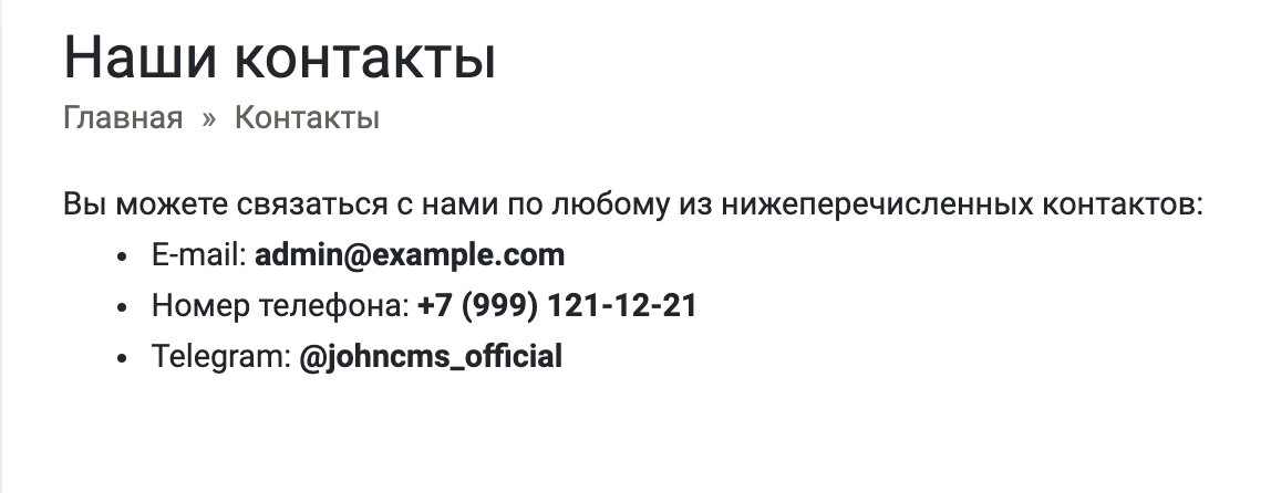 Теперь наш модуль доступен по адресу ваш.сайт/contacts/