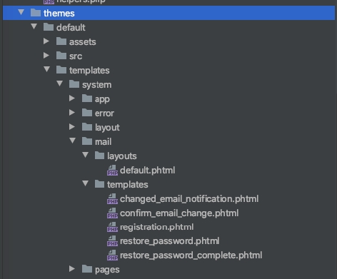 Почтовые шаблоны так же как и основные шаблоны сайта хранятся в папке themes.